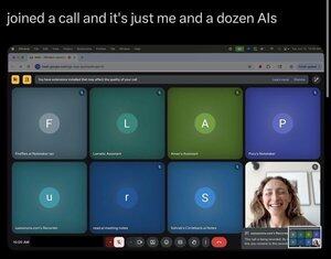 Jeg er faktisk veldig proff på møteopptak og ai-oppsummering. Men jeg er ikke ok med at roboter blir med når falske mennesker oppnår dette. Det er et møte mellom deg og meg. Ikke deg og meg og noen startups virale vekststrategi.