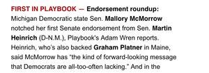 Nytt: @MalloryMcMorrow henter sin første støtte fra Senatet fra @MartinHeinrich.