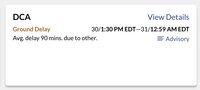 Senatorer på vei ut av byen i ettermiddag via DCA vil sannsynligvis treffe noen forsinkelser. Påvirkningsforhold er oppført som "bemanning"