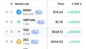 markedet har snakket Personvern $ZEC og $DASH AI $TAO og $VIRTUAL Dette er løperne