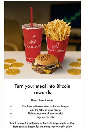 Det er lørdag. Skaff deg en bitcoin-burger til @SteaknShake og $5 bitcoin fra @fold_app