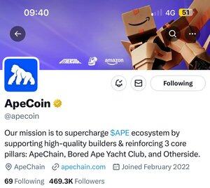 Jøss! Var det noen andre som la merke til det nye @apecoin-banneret 👀 Otherside x BAYC x Amazon-logoer side om side 🔥 ekte spørsmål, hvordan kan du ikke være bullish?!