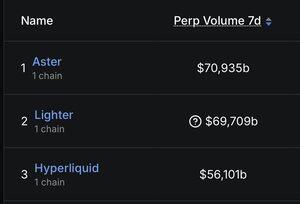 Enkelt svar: nei. Bare se på den åpne interessen: mesteparten av volumet på Lighter og Aster er wash trading. Når du ser tweets som de ovenfor, må du alltid faktasjekke før du tror på det.