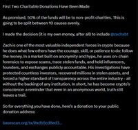 The White Whale (WWT) har donert $157K til @zachxbt som anerkjennelse for hans nådeløse arbeid med å avsløre svindel og bringe åpenhet til krypto.