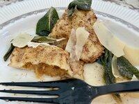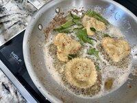 Fri fra fiat-gruvene i 2 uker. Feirer med en utmerket rose og hjemmelaget butternut squash ravioli sautert i brunt smør og salvie. Troglodyt overgikk seg selv.