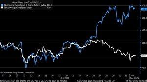 Det er et K-formet marked den siste måneden. Mag 7 +5,4 % Likevektet S&P 500 -2,1 %