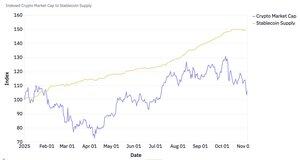 Mens stablecoin-tilbudet er flatt M/M, er det fortsatt stort sett koblet fra kryptomarkedsverdien