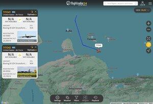 Et par @usairforce (🇺🇸) B-52 Stratofortress (#: 60-0034 & 60-0060) flyr for tiden like sør for Curaçao (🇨🇼/🇳🇱) og ~30 miles (48 km) fra kysten av Venezuela.