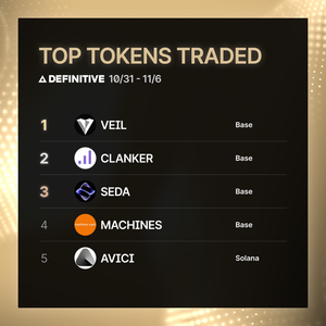 ⚡ TOPP TOKENS HANDLET på Definitive forrige uke, etter tx-telling: