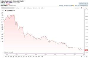 Indisk rupi har nå mistet hele 46 % av verdien mot amerikanske dollar siden 2009 📉📉