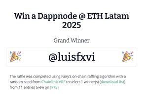 Vinneren av utlodningen for Dappnode @ @ethlatam er... @luisfXVI !
