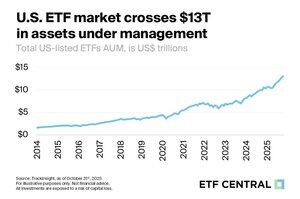 Det er nå mer enn 13 billioner dollar investert på tvers av USA-baserte 🇺🇸 ETFer, opp fra ~5 milliarder dollar i 2020