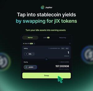 Jupiter Lend gir flere måter å tjene på. Ikke bare kan du sette inn penger til Earn Vaults på nett eller mobil: Du kan bytte direkte til avkastningsbærende eiendeler på Jupiter Exchange – jlUSDC, jlUSDT og et hvilket som helst annet jlX-token.