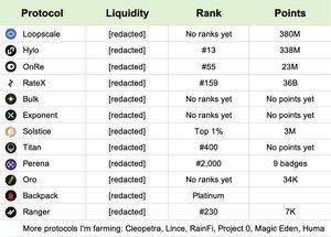 rekker og hva jeg for tiden dyrker på Solana (ingen spesiell rekkefølge)