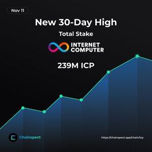 Total eierandel på Internet Computer nådde nettopp en ny 30-dagers topp på 239 millioner ICP (1,49 milliarder dollar). Mer innsats betyr sterkere sikkerhet og dypere desentralisering 💪