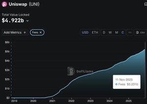 Siden oppstarten har Uniswap generert over 5,2 milliarder dollar i gebyrer totalt.