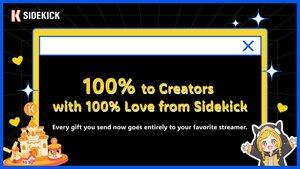 Fra og med nå går hver gave du sender helt til favorittstrømmeren din – Sidekick tar 0 %.