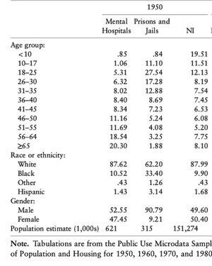 Blant annet, hvis du ser på hvem som var på psykiatriske sykehus før avinstitusjonalisering, er det 47 % kvinner og 20 % eldre borgere i en tid da den nasjonale aldersstrukturen var mye yngre.