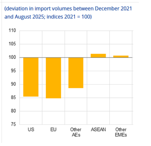 ECB-dokumentet fremhever også noe som er åpenbart i dataene, men som verken IMF eller WTO har vært i stand til å si klart, nemlig at Kina er deglobalisatoren i spissen (importveksten har massivt forsinket BNP-veksten)