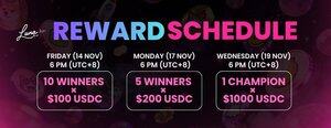 1. Fre 14 Nov, 6PM (UTC+8): 10 vinnere × $100 USDC