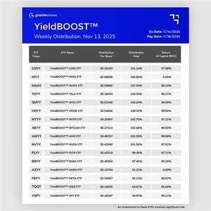 GraniteShares kunngjorde distribusjonssatser for alle GraniteShares YieldBOOST™ ETFer i dag, som oppført i tabellen nedenfor.