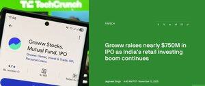 🚀 Store nyheter fra Indias fintech-scene: @_groww har nettopp samlet inn ≈ 748 millioner dollar i børsnoteringen – aksjene stengte 29 % over emisjonskursen, og verdsatte selskapet til rundt 9 milliarder dollar! 🇮🇳 Groww ble lansert i 2016 av tidligere @Flipkart-ansatte, og betjener nå over 14 millioner aktive brukere og forgrener seg fra megling til utlån, betalinger, kapitalforvaltning og forsikring. Noteringen kommer midt i en økning i indiske detaljhandelsinvesteringer – og Growws suksess signaliserer et stort skifte: førstegangsinvestorer, teknologioppstarter som blir børsnotert, globale VC-utganger og Indias fintech-appetitt som treffer for fullt. 🌍 Investorer som Satya Nadellas @Microsoft, @RibbitCapital, Tiger Global og @ycombinator støttet oppstarten. Markedsføring og infrautvidelse står på agendaen nå. Epoken med "ikke bare e-handel fintech", men "fintech for alle i India" er her.