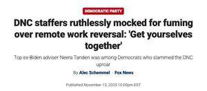 DNC-ansatte er tilsynelatende "rasende" over at de snart må ta på seg de store guttebuksene og faktisk møte opp på jobb 5 dager i uken 😂😂 Å møte opp på jobb er den nye demokratiske offerklassen.