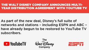 The Walt Disney Company kunngjør en flerårig distribusjonsavtale med YouTube TV.