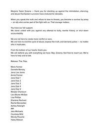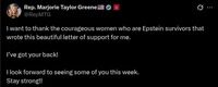 «Jeg vil takke de modige kvinnene som er Epstein-overlevende som skrev dette vakre støttebrevet til meg.