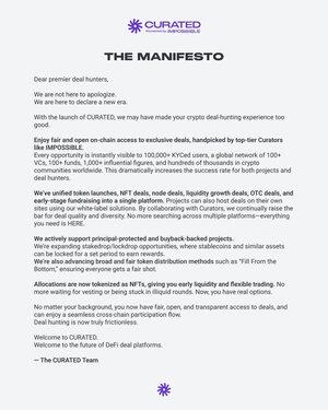 Vi introduserer CURATED – den ultimate DeFi-plattformen, drevet av @impossiblefi.