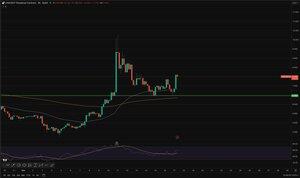 Den falt tilbake til den viktige støttesonen rundt 6,950-7,00 og holdt den rent. Det er det viktigste her. Kjøperne gikk inn akkurat der de skulle, og prisen steg tilbake over 4H 50 EMA, noe som er et greit kortsiktig tegn på styrke.