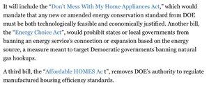 Og en scooplet i ME: Mens lovgivere i begge partier utveksler skylden for økende priser på forsynings- og boligmarkedet, vil @HouseCommerce energiunderkomiteen denne uken holde en påslag på lovforslag som har som mål å rulle tilbake føderale standarder for apparat- og bygningseffektivitet. En liten oppsummering av noen av lovforslagene her