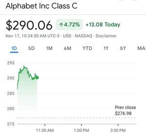 Alphabet (GOOGL) opp +4,7 % etter helgen avslører at Berkshire Hathaway and Buffet har en eierandel på 4,3 milliarder dollar i aksjen (deres tiende største posisjon)