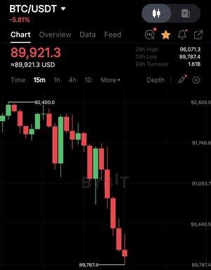Bitcoin falt nettopp under 90 000 dollar Hva faen, mann, !!