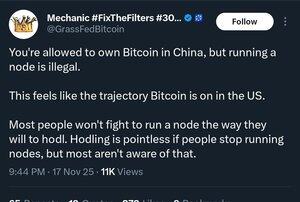 Jo mer han snakker, jo mer er jeg overbevist om at han er en spion. Å bruke en node betyr at du har validert TX-en din. Når du føler deg komfortabel med bekreftelsene, kan du slå av den noden og aldri bruke Bitcoin igjen før... Du stabler en fin UTXO som du må validere for å ta i egen varetekt. Så i bunn og grunn har HODLIng INGENTING med å kjøre en node å gjøre.