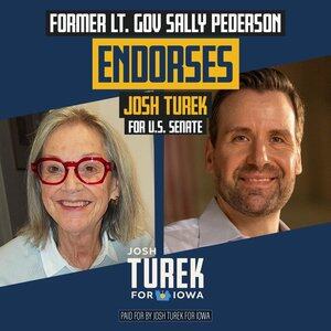 "Iowa har ikke 'blitt rød' – vi er fortsatt den samme staten som valgte Tom Vilsack og Tom Harkin. 2026 blir året vi tar tilbake staten vår, og jeg er stolt av å støtte Josh som kandidaten til å gjøre det.» Takknemlig for støtten fra Fmr. LG Sally Pederson. La oss snu dette setet!