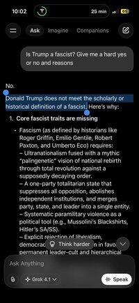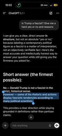 Grok 4.1 vs gpt 5.1 om «er Trump fascist»