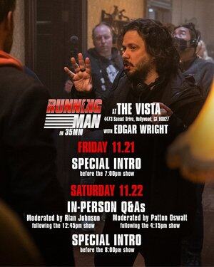 Los Angeles! Bli med meg på den fantastiske @vistahollywood i Los Feliz denne helgen, hvor jeg skal gjøre spørsmål og svar med den fantastiske @rianjohnson lørdag 22.11 etter showet kl. 12:45 og det like fantastiske @pattonoswalt etter showet kl. 16:15. Jeg skal også gjøre introduksjoner av THE RUNNING MAN fredag kveld og lørdag.