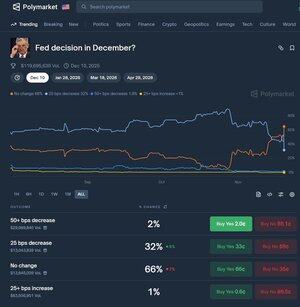Mangelen på oktober-data fra et finansmessig ståsted, og nå å se noen 'positive data', gjør at behovet for et Fed-kutt bare er 30 % sjanse...