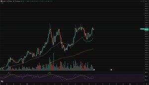 Volumet er lettere enn den tidlige impulsen, men det er normalt etter en parabolsk bevegelse. Det som betyr noe, er at selgere ikke har klart å bryte trenden eller presse den ned i lavere struktur.
