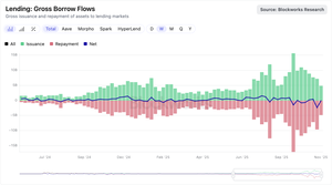 Bruttoutstedelse og tilbakebetaling av lån på tvers av Aave, Morpho, Spark og Hyperlend nådde toppen i slutten av september/begynnelsen av oktober.