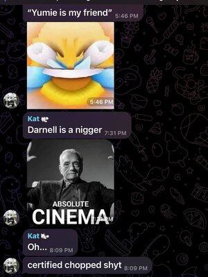 Hei, jeg er @katdegen jeg er en hvit jente som elsker å kalle menn hun aldri har møtt for hakkede og n-ordet
