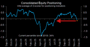 Deutshe Bank: «I våre målinger er aksjeposisjonen nå undervektet for første gang siden juli (-0,15 sd, 34. percentil).»