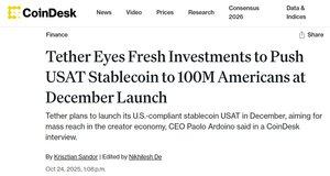 Tether gjør alt klart til sin USAT-lansering i desember, og ønsker å distribuere USAT til 100 millioner amerikanere!