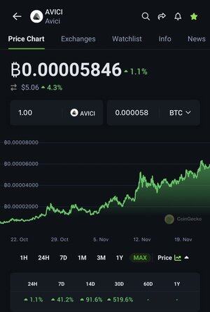 Dette er det $AVICI diagrammet i $BTC verdi.