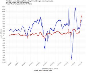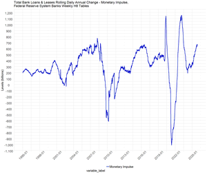 Noe skjer som er uten sidestykke – kjølvannet av dette kan sees i den monetære impulsen (strømmen (ikke lagerbeholdningen) av banklån og leieavtaler i hele systemet. Skyggebanken – bare et kvalifisert gjetning – dobler sannsynligvis dette når det gjelder flyt