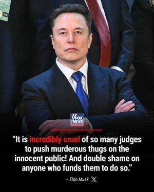 MUSKS BUDSKAP: @elonmusk taler ut mot dommere som lar yrkeskriminelle gå fritt og terroriserer offentligheten.