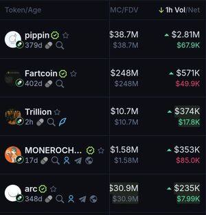 Topp Pumpfun-mynter for den siste 1 timen basert på volum: