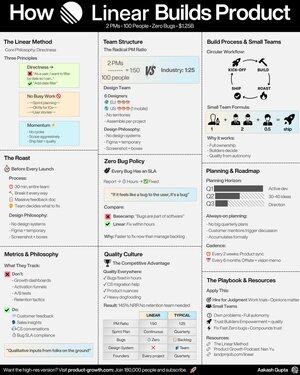 I stedet er kjernen i måten Linear bygger produkter på «Den lineære metoden». Mange av grunnleggerne jeg snakker med har religiøst kopiert den. Det finnes tre nøkler, slik jeg ser det: