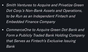 Dimensjonal kjøpsdip har nettopp sendt inn en 13G for $GDOT Green Dot. Dette selskapet blir kjøpt opp hver dag nå. Kinas exit rydder vei. Det samme gjør forlik i en nylig sak. Konstituert administrerende direktør er 83 år gammel. Mystisk hyllearkivering sammen med kommentar om "vi har ingen planer om å bruke den". Alt summerer seg.